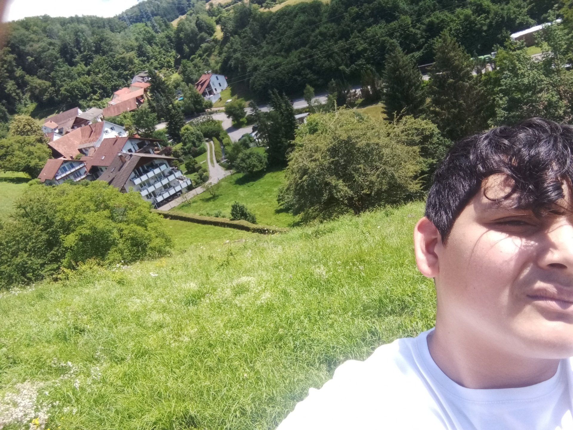 Hier sitzt Csaba Danko vor der Kapelle von Nieder - Dossenbach. Im Hintergrund, schwer zu erkennen, das haus , in dem er jahrelang gewohnt hat. Er müsste eigentlich etwas über die Schlacht von Niederdossenbach wissen. Und was das mit der Situation von 1848 zu tun hat.