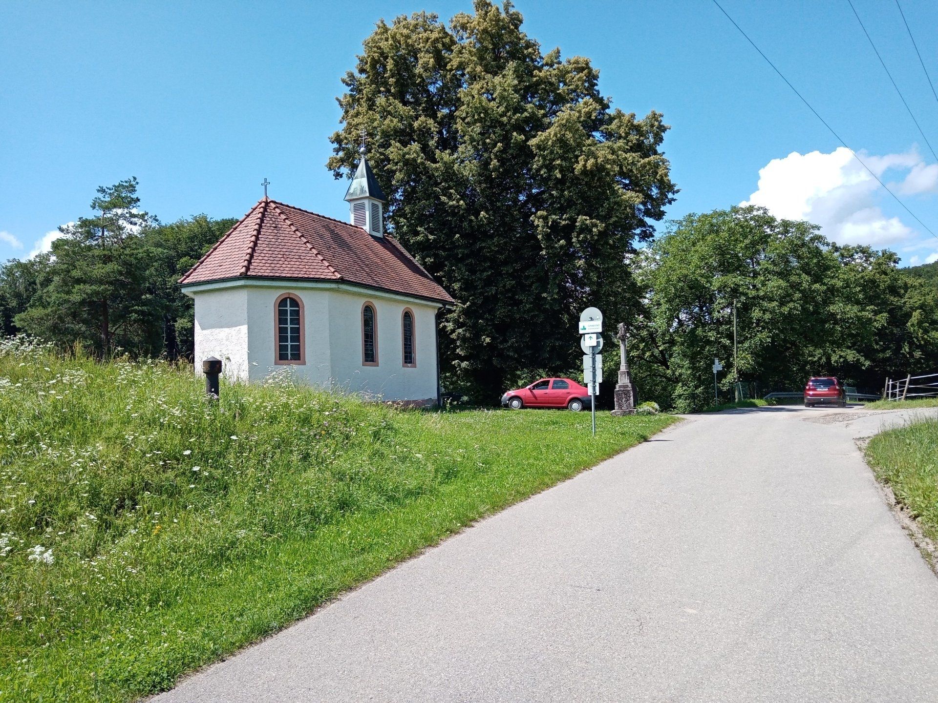 wir sehen hier einen uralten Kreuzweg an dem ein Wegekreuz aufgestellt. wurde.